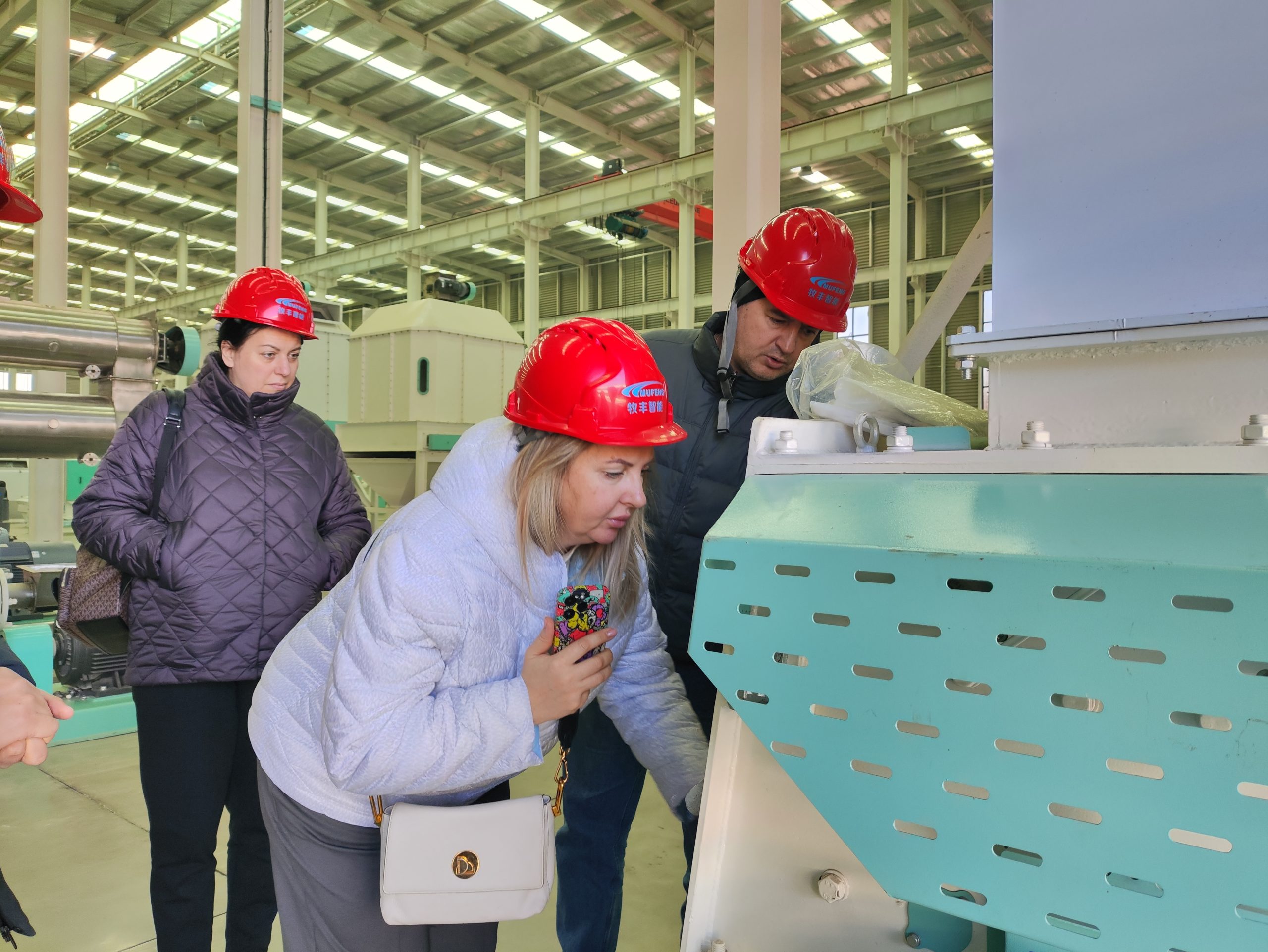 The Russian customers first toured the modern feed production factory built by Mufeng, observing real-time operation of several key machines commonly used in commercial fish feed plants and pet food factories.